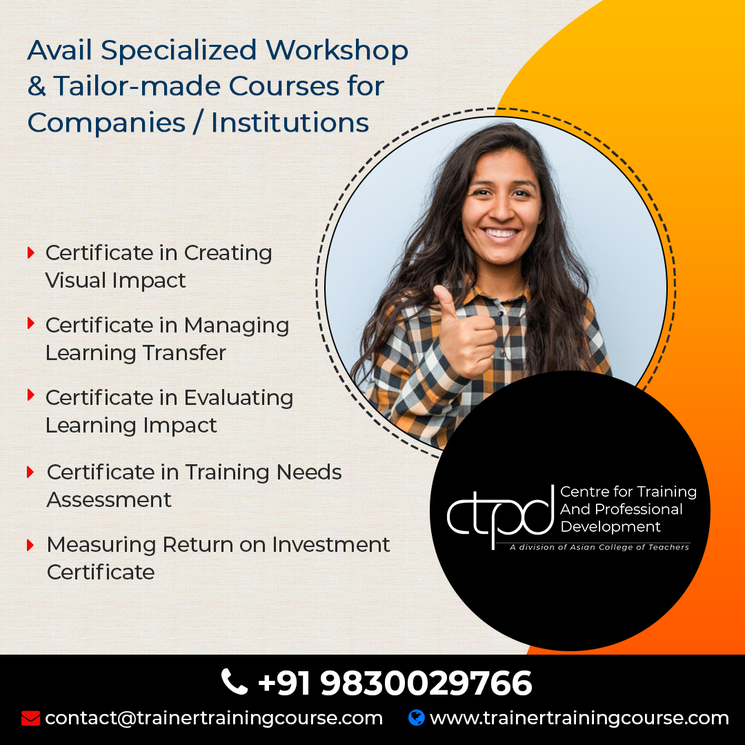 If you have been looking for an impactful and result yielding corporate training program designed for companies, then this is it. One of the major concerns of the training managers across the globe is how to measure the impact of training programs. Developing the right assessment processes and competency maps have been on top of the list of the companies who are keen to track, how training is contributing to the building of your organization.Use this program to determine the impact of learning programs while you develop and implement an evaluation strategy for your organization. Training imparted must have an impact on the employee’s work-related attitude. It also suggests the level at which employee’s skill is developed and knowledge is gained as consequences of training.